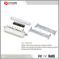 8 Pair LSA disconnection module 2/8x3 With wire guide and lable holder,metal bracket.Dimension:150x30x47mm.