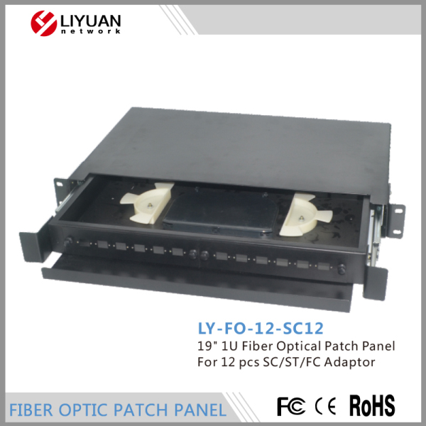 19" 1U Fiber Optical Patch Panel For 12 pcs SC/ST/FC Adaptor