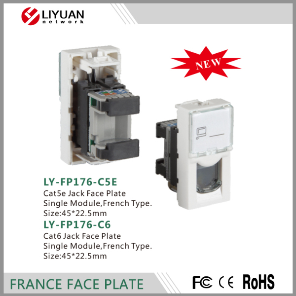 LY-FP176-C5E Cat5e Jack Face Plate Single Module,French Type.Size:45*22.5mm/LY-FP176-C6 Cat6 Jack Face Plate Single Module,French Type.Size:45*22.5mm Cat6 Jack Face Plate Single Module,French Type. Size:45*22.5mm