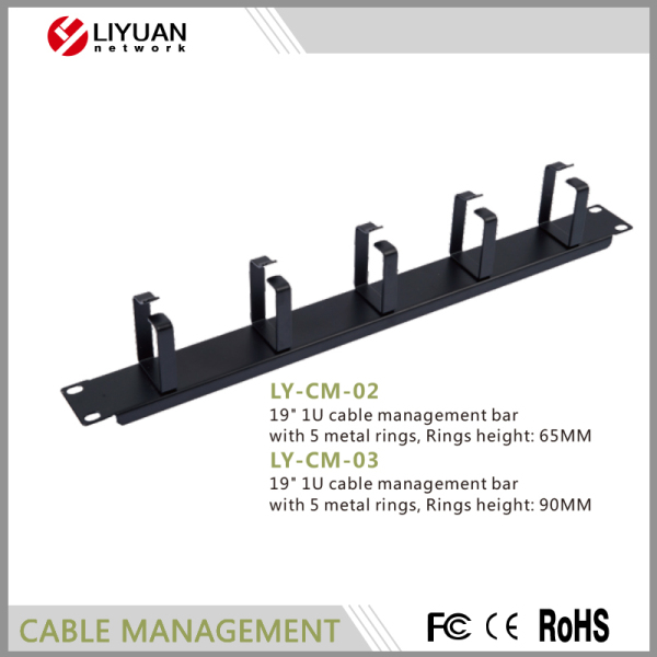 LY-CM-02 19" 1U cable management bar with 5 metal rings, Rings height: 65MM/LY-CM-03 19" 1U cable management bar with 5 metal rings, Rings height: 90MM
